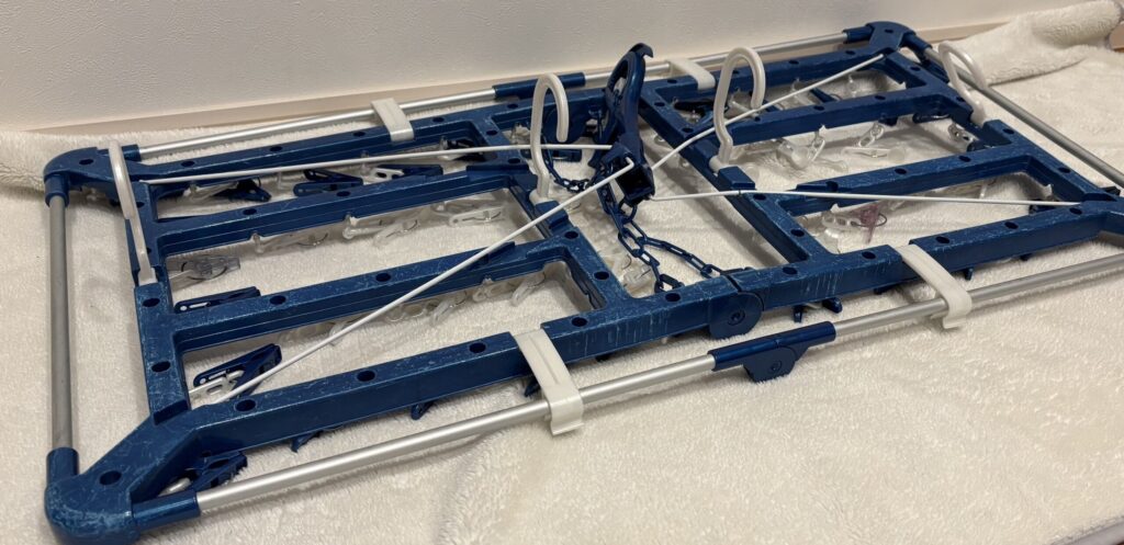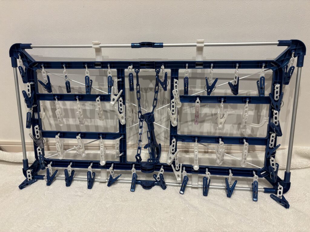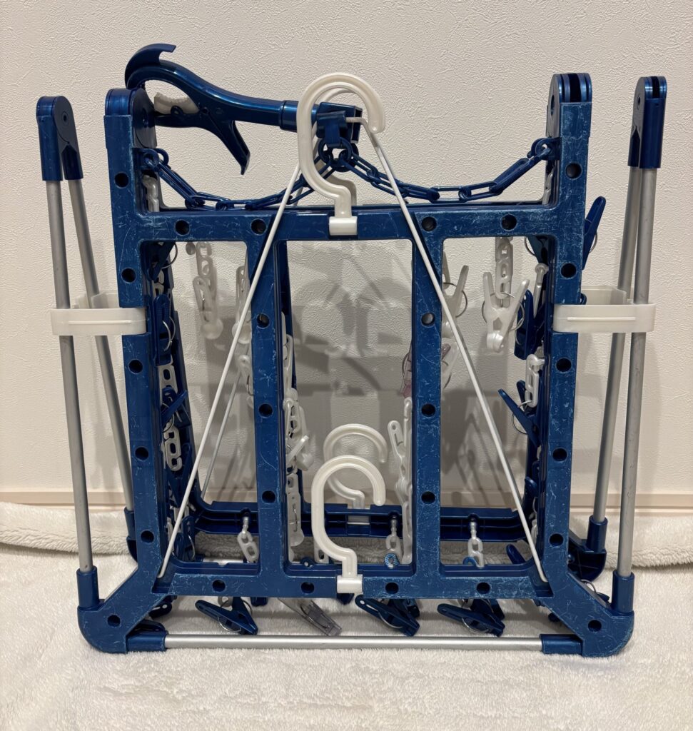 - 折りたたんで収納した際、洗濯バサミが引っかかることがある